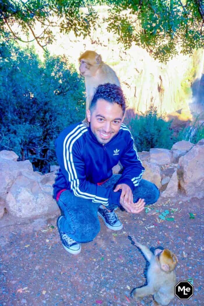 Naar boven wandelend kwamen we wilde aapjes tegen. Met nootjes van de gids, kan je ze overtuigen om vriendjes te worden. Al moet ik zeggen dat Abdullah er iets beter in was dan ik. Het kleintje hierboven op de foto heeft hem uiteindelijk een handje gegeven en zelfs vrijwillig op zijn schouder gezeten.